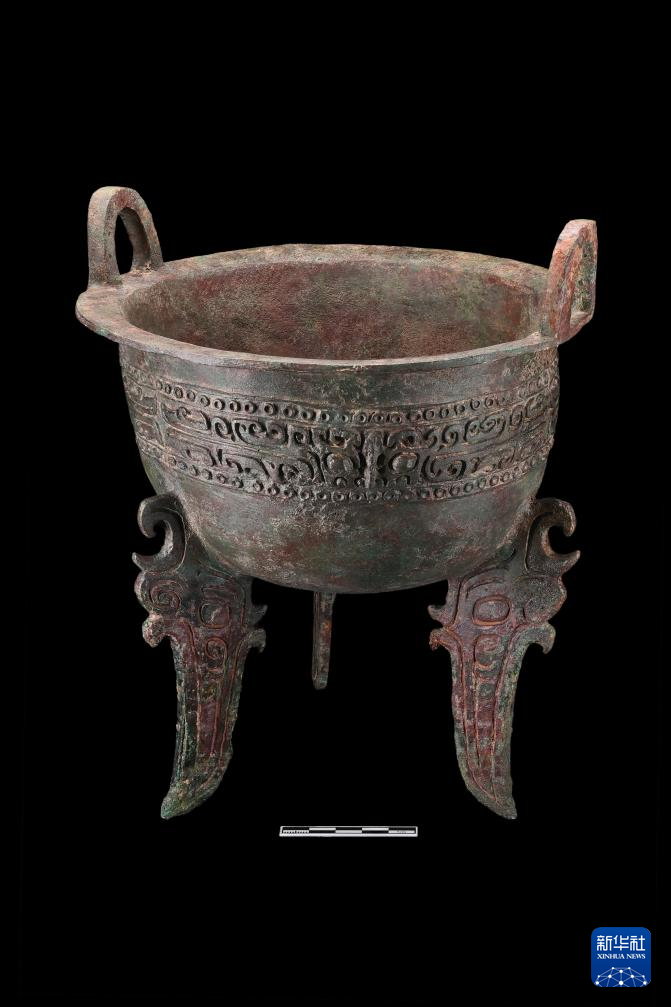 这是郑州商都书院街墓地M2墓葬中出土的铜鼎(资料照片)。