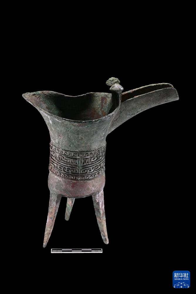 这是郑州商都书院街墓地M2墓葬中出土的铜爵(资料照片)。