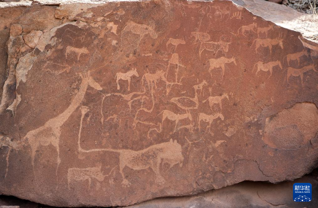 这是3月26日在纳米比亚库内内省拍摄的颓废方丹岩画。
