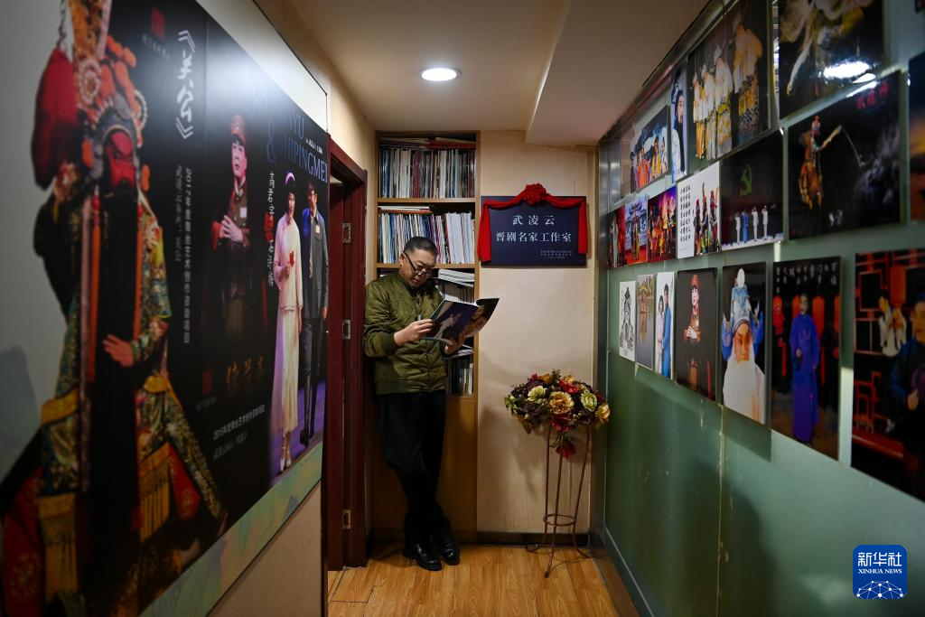 武凌云在太原市晋剧艺术研究院一边研读剧本,一边清唱(2月6日摄)。