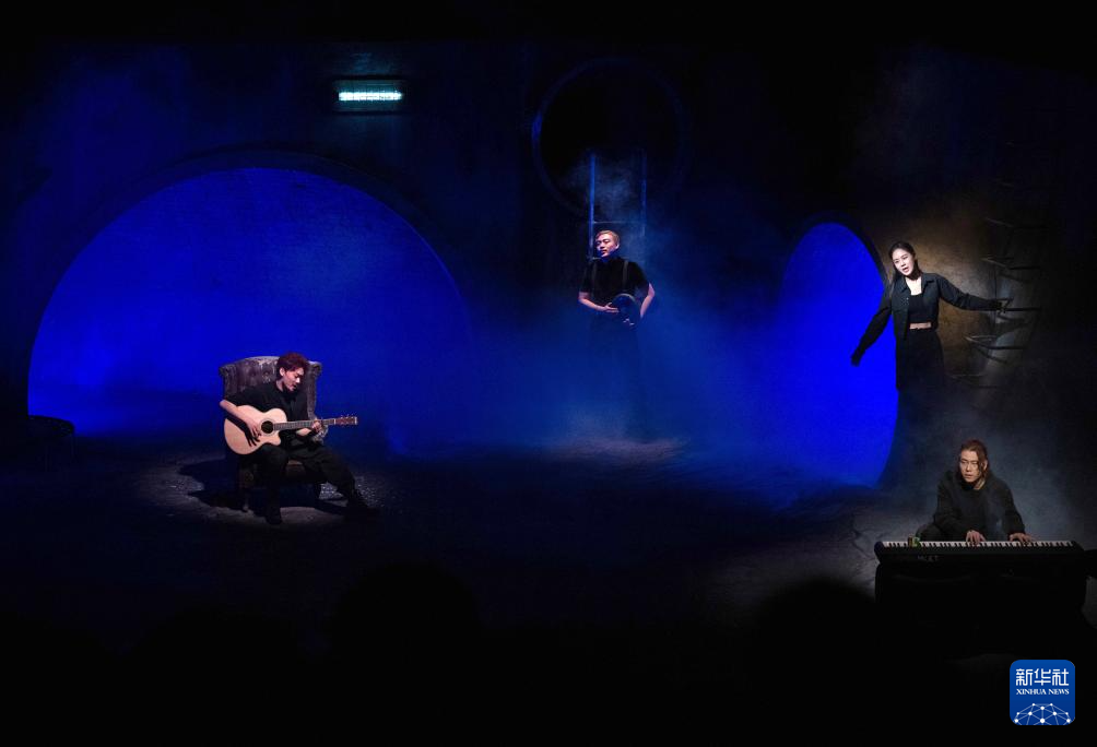 4月5日,演员在话剧《哈姆雷特》的演出中。