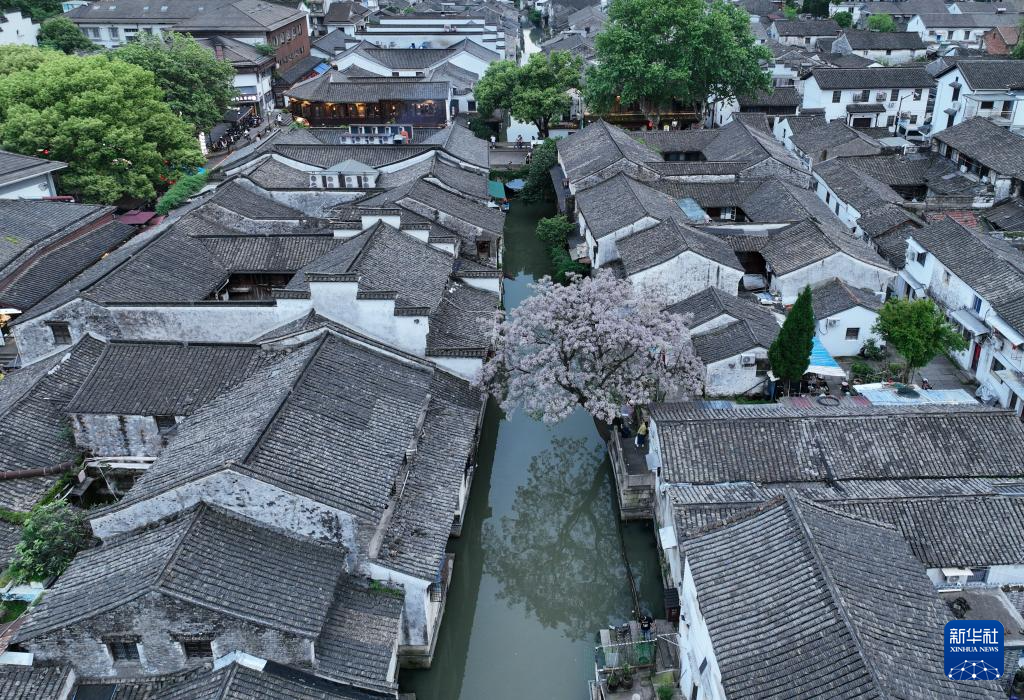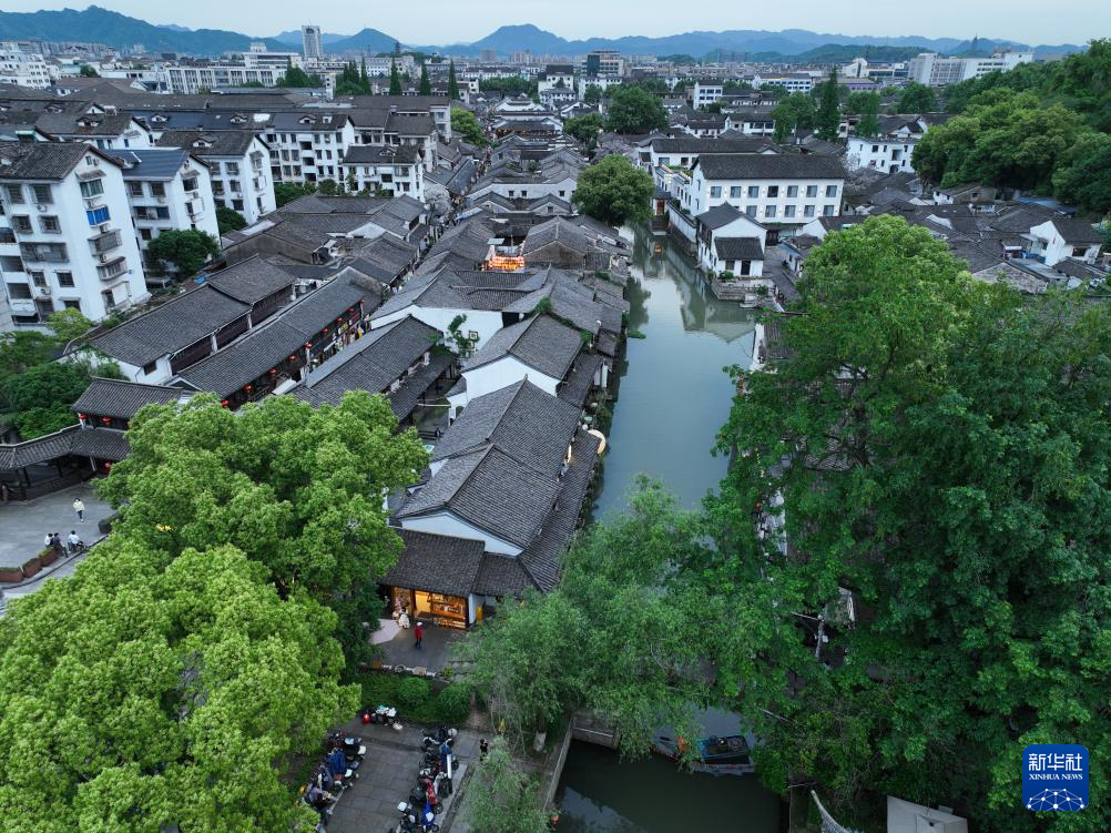 鸟瞰仓桥直街(无人机照片,4月24日摄)。