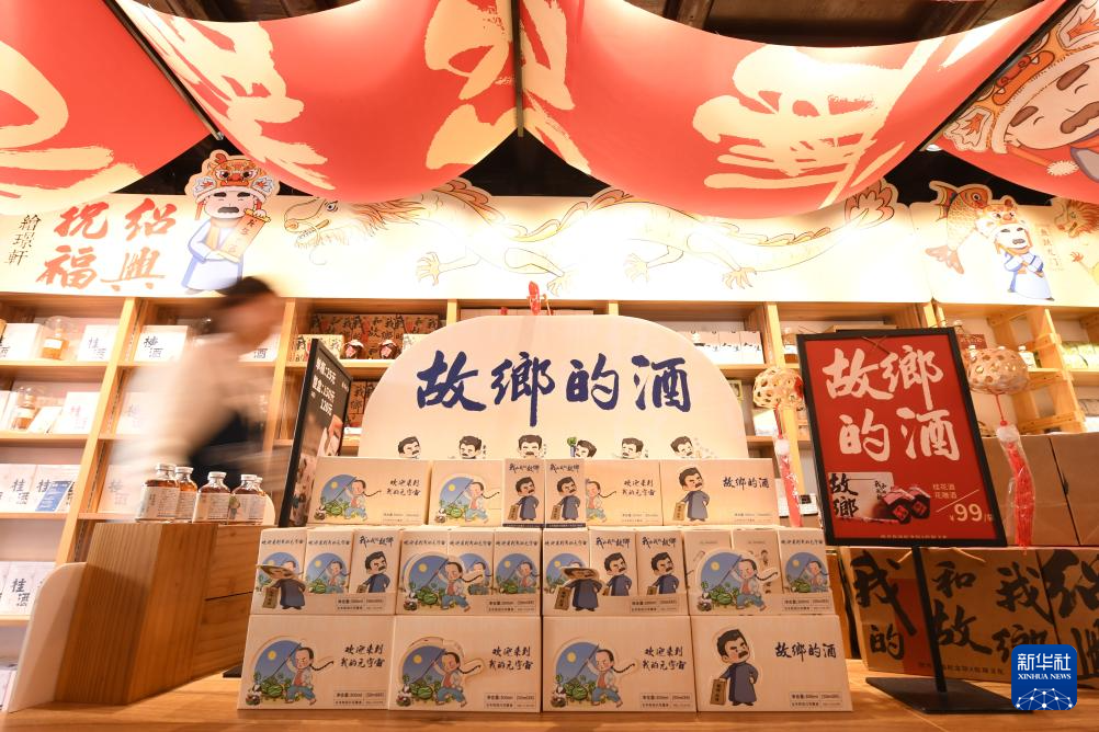 这是仓桥直街一家店铺陈列的创意黄酒(3月13日摄)。