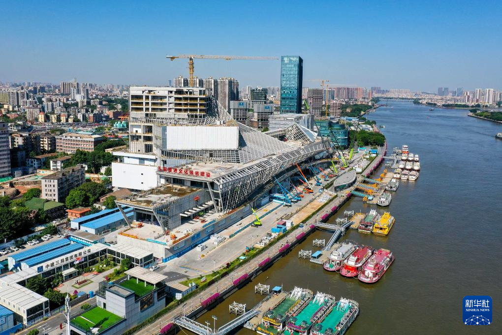 钢结构施工阶段的白鹅潭大湾区艺术中心(2022年10月12日摄)。