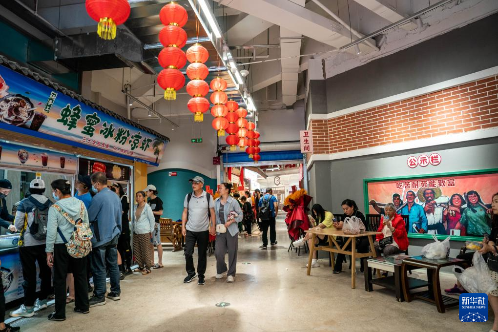 近日,以怀旧风为主题的昆明篆新滇池菜市开业。该市场不仅有传统“菜市场”的肉蛋果蔬购物区,还融入许多老昆明的文化和旅游元素,在方便附近居民买菜的同时,吸引不少市民前来参观,成为体验文化、品味历史的打卡地。