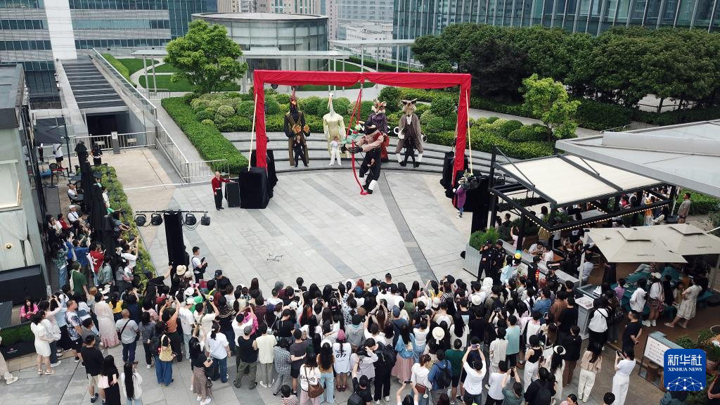 5月7日,观众在长沙国金中心观看木偶剧演出(无人机照片)。