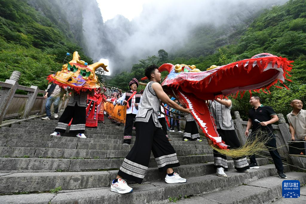6月8日,在湖南省张家界天门山景区,艺人在进行梭地龙展演。