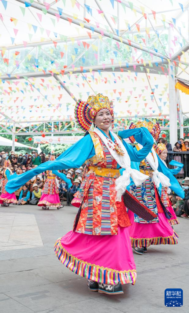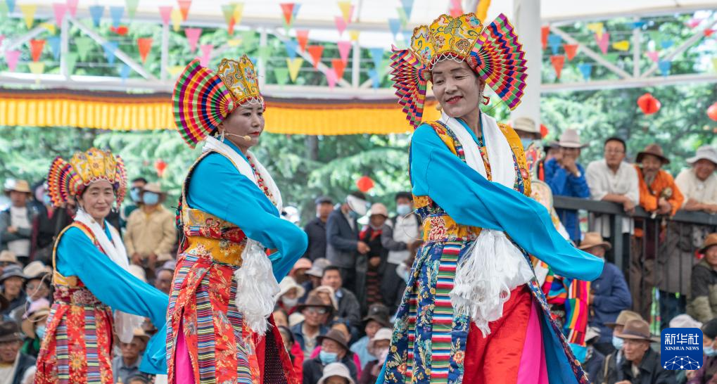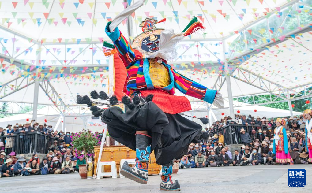 6月11日,藏戏艺人在拉萨市宗角禄康公园表演。