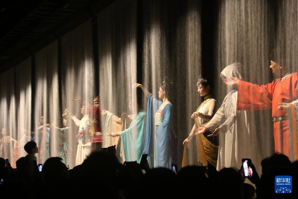 7月3日,演员在大型情景音画剧《千手千眼》中表演。