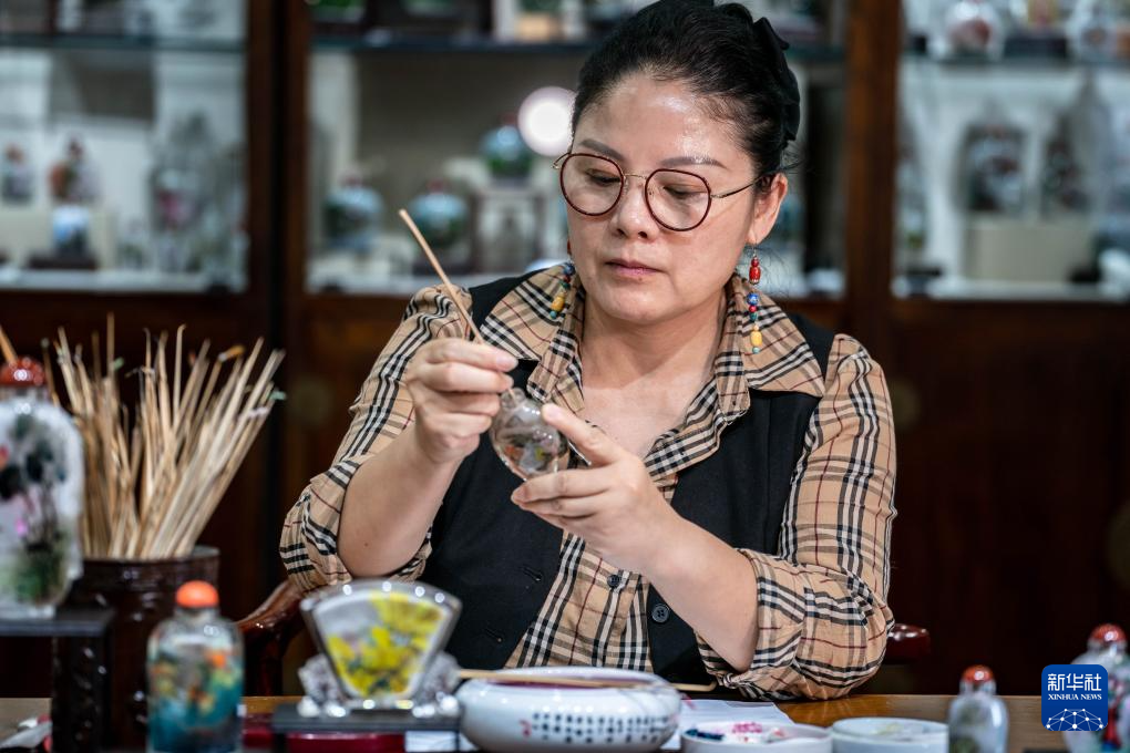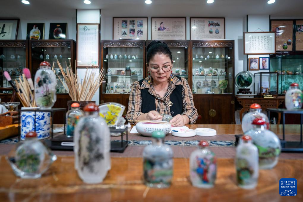 滇派内画在坚守传统技艺的同时,通过颜料、工具的创新,以及紧跟时代的设计风格,收获了许多年轻人青睐。“作为文化载体的非遗技艺也要与时俱进,接纳并满足不同时代的社会需求,在不断创新中把古老技艺传承下去。”孙鸿雁说。
