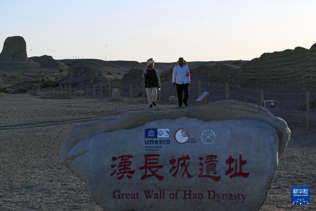 玉门关外,大漠戈壁,汉长城遗址巍然屹立,诉说着历史上的边塞风云和丝路沧桑。