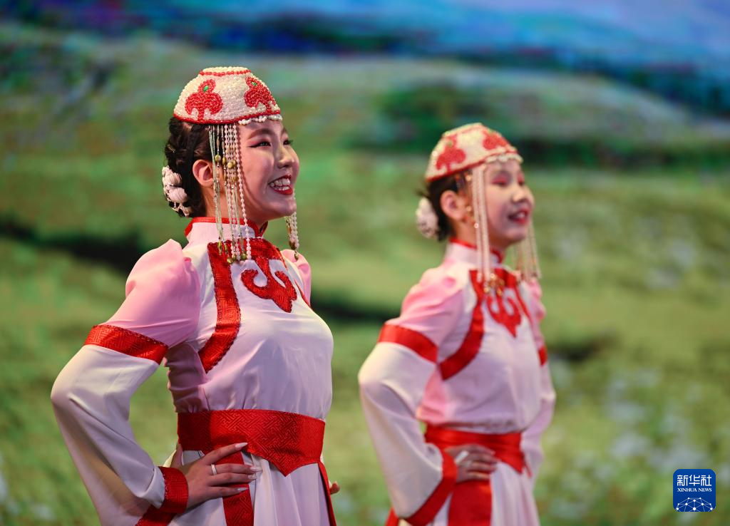 7月22日,蒙古国阿维亚斯-比莱格少儿艺术团在艺术节上展演。