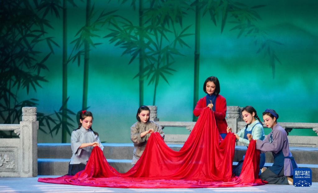 8月29日,京剧演员在吉林市人民大剧院表演现代京剧《江姐》选段。