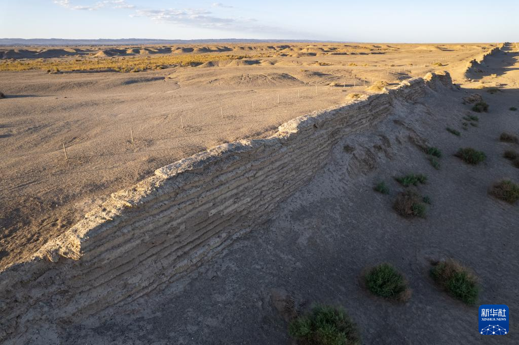 7月17日在甘肃省敦煌市玉门关遗址区拍摄的汉长城(无人机照片)。