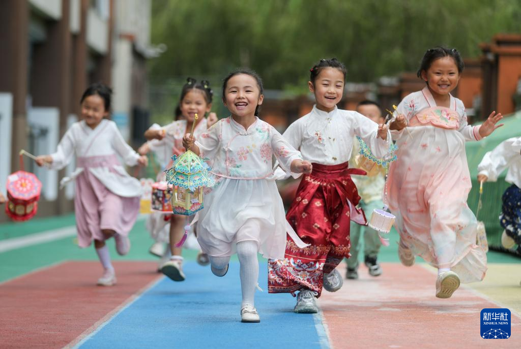 9月11日,在贵州省贵阳市开阳县第二幼儿园举行的“品民俗 迎中秋”主题活动中,小朋友手持花灯开心奔跑。