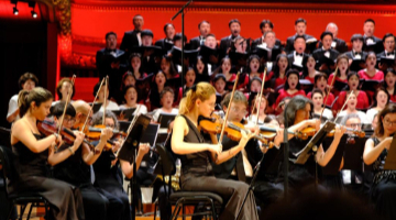 9月9日,在瑞士日内瓦维多利亚音乐厅,乐团演奏《黄河大合唱》。新华社记者 陈斌杰 摄