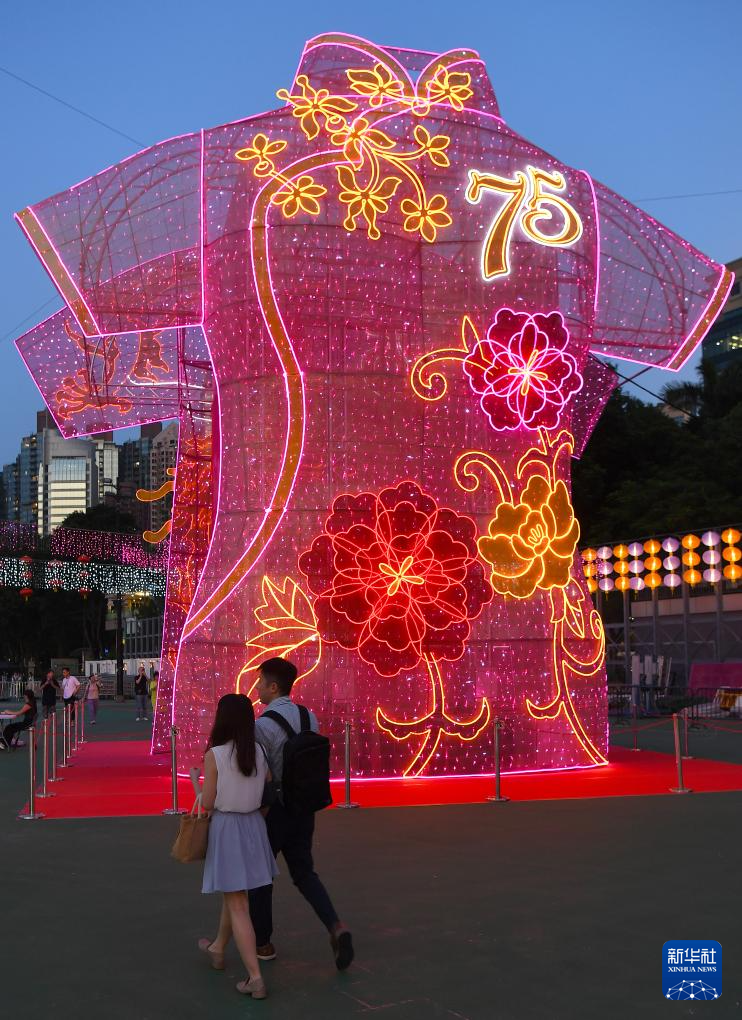 当日,以“国风·港味”为主题的中秋彩灯会在香港维多利亚公园亮灯,迎接中秋节和国庆节。