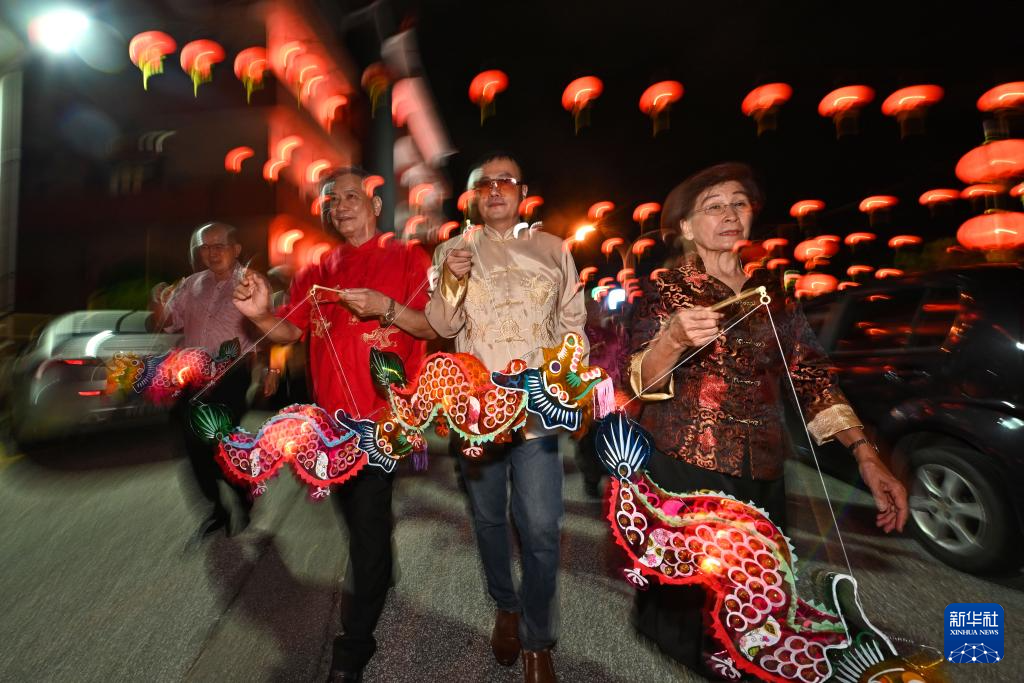 9月17日,在马来西亚雪兰莪州巴生,民众在中秋游园会活动上提灯。