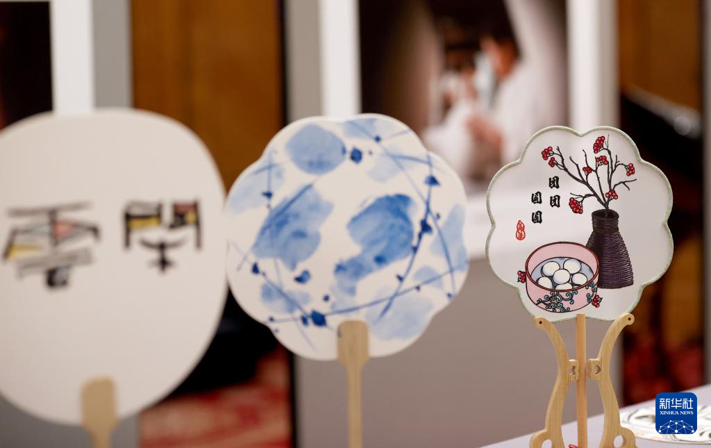 这是9月17日在英国伦敦拍摄的“天涯共此时——景秀China”景德镇文化和旅游宣传推广活动上的中秋主题工艺品。