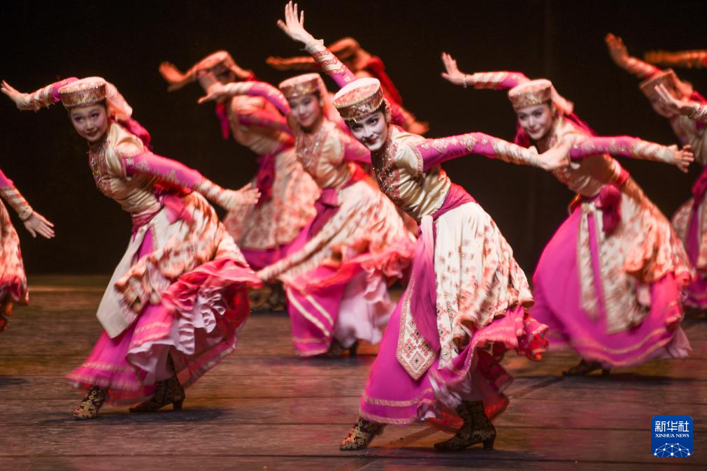 9月21日晚,新疆文化和旅游学校师生表演舞蹈《追赶太阳的姑娘》。