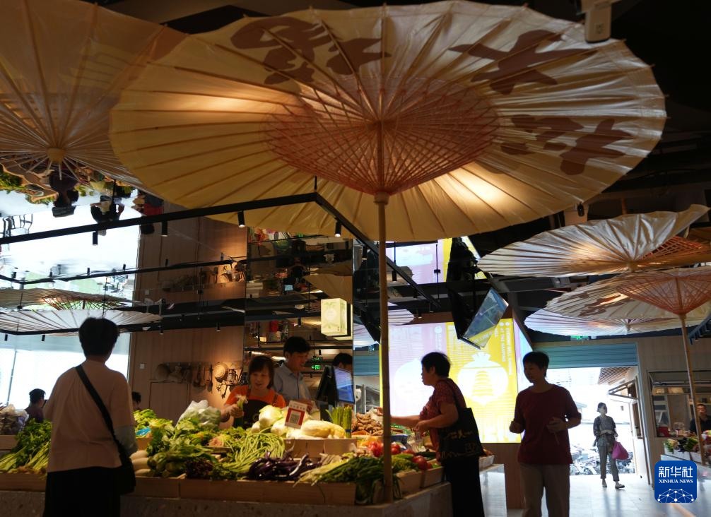 日前,位于杭州市西湖区北山街道的松木场农贸市场经过改造升级后启动试营业。改造后的菜市场将绘画、书法、文学等元素融入内外部空间,为菜市场增添艺术氛围,提升了整体形象。