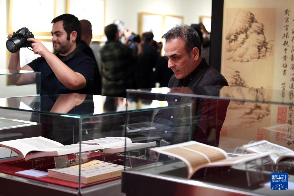 10月12日,人们在伊朗首都德黑兰的马利克国家博物馆参观“丝路长云——中国艺术文化精品展”。