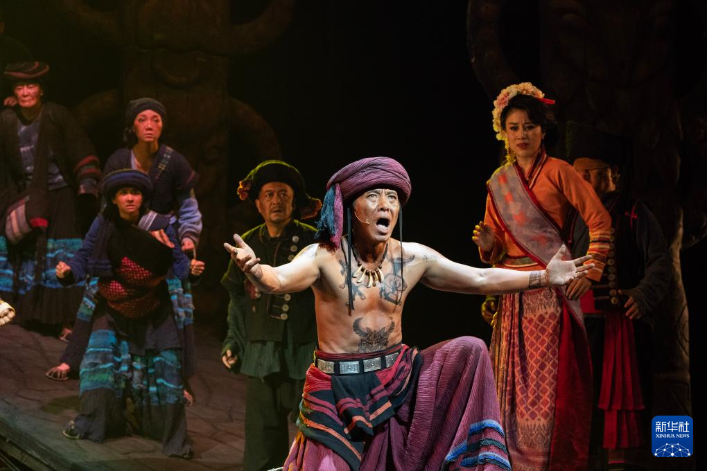 10月13日晚,演员在云南省大剧院表演话剧《澜沧水长》。