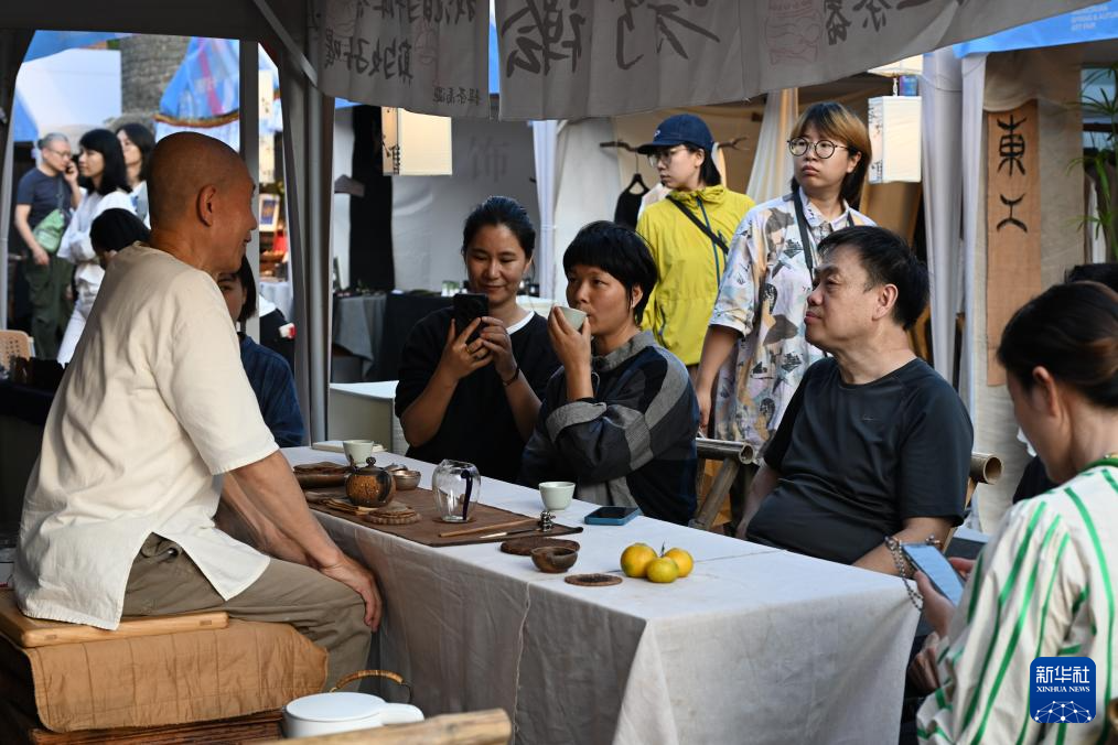 10月17日,游客在陶溪川春秋大集上了解茶艺。