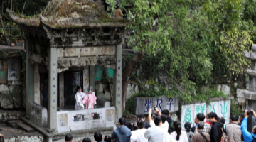 10月27日,在常德河街春秋广场,常德市澧县文化馆的演员在表演节目《澧水船工号子》。