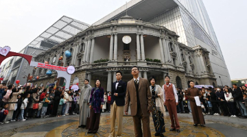 10月27日,在常德河街春秋广场,湖北恩施巴东县长江峡江号子传承基地的演员在表演节目《长江峡江船工号子》。