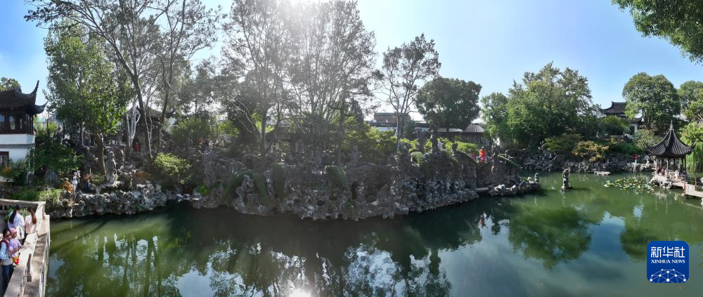 游人在留园参观游览(10月23日摄,无人机照片)。