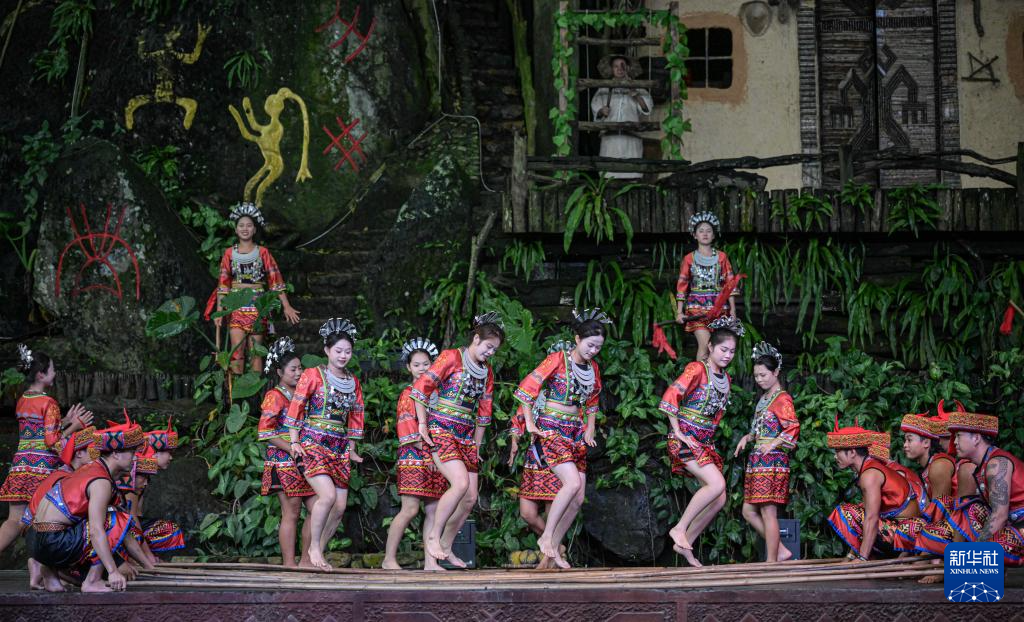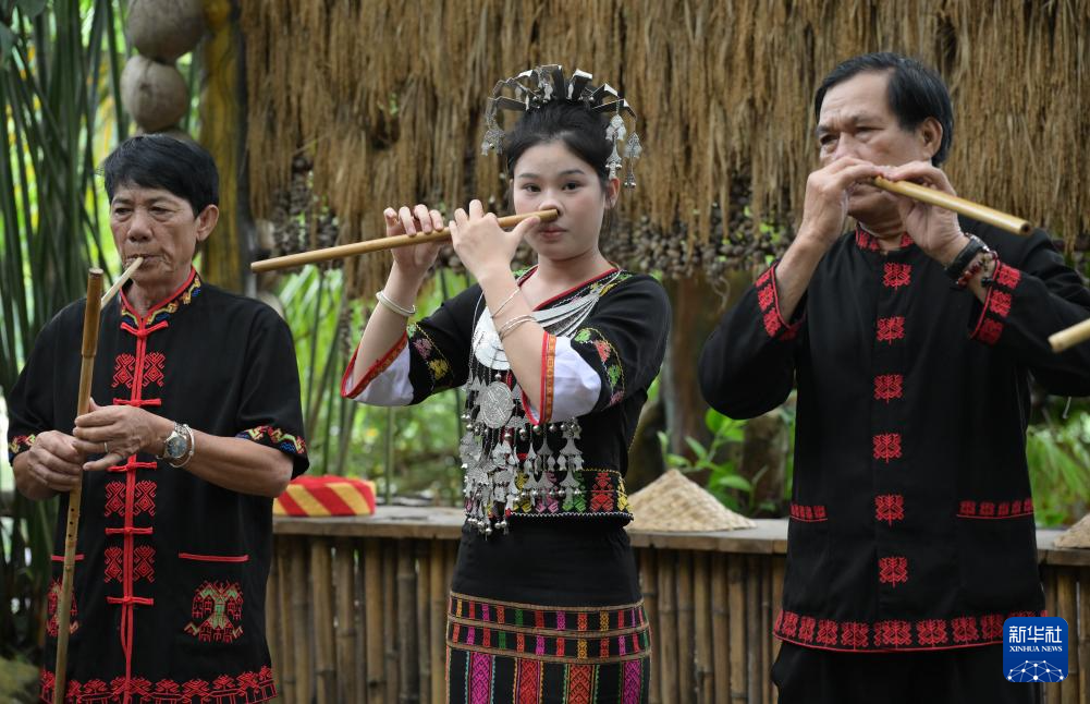 位于海南保亭的槟榔谷文化旅游区坐落在热带雨林中。多年来,槟榔谷挖掘、保护和传承海南黎族文化,向外界展示黎族传统纺染织绣技艺、黎族打柴舞、黎族竹木器乐等多项国家级非物质文化遗产。