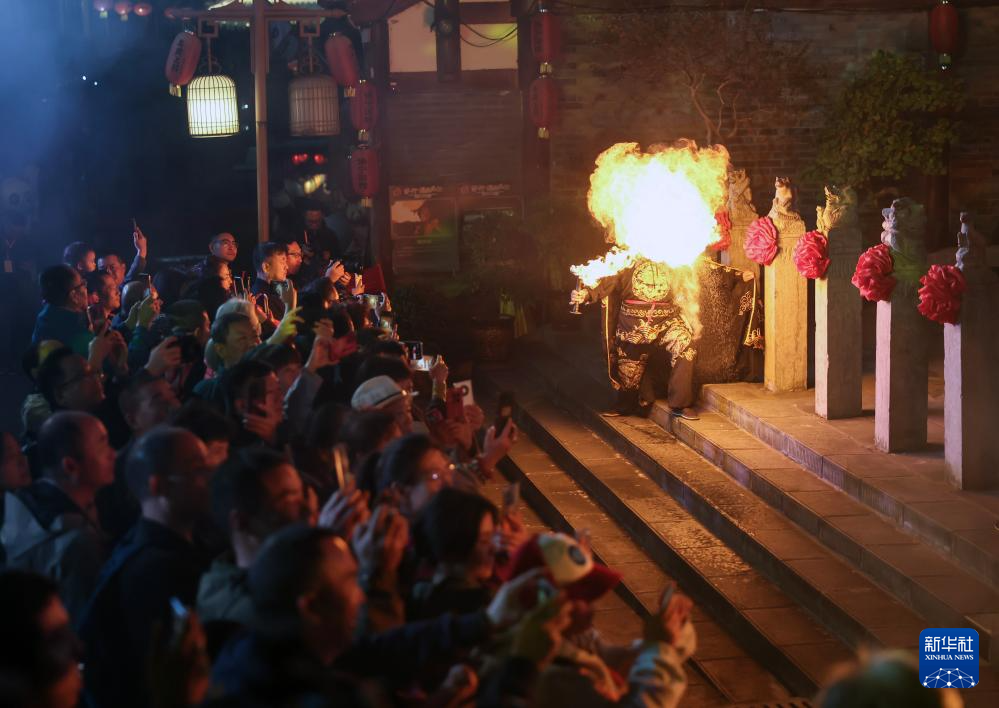 11月5日拍摄的实景演出《蜀道盛世》中的“变脸”。
