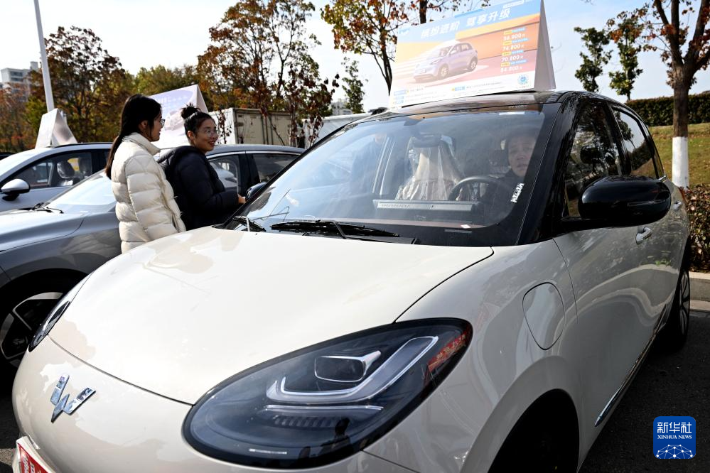 11月24日,人们在萧县“十月古会”汽车展销区参观体验。