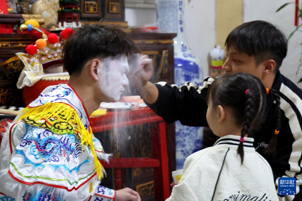 12月9日,庄恩琪在活动开始前看爸爸化妆。