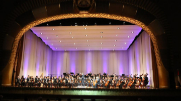 12月17日,小学生在哈尔滨松花江畔的大雪人前表演。