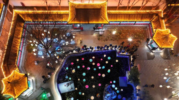 12月23日,人们在第37届太阳岛国际雪雕艺术博览会上游览(无人机照片)。