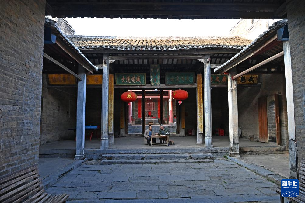 村民从金秀县桐木镇那安村龙腾屯一座古宅里走出(12月19日摄)。