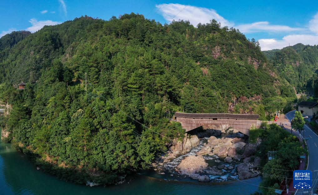 这是位于宁德市寿宁县下党乡的木拱桥——鸾峰桥(2024年8月27日摄,无人机照片)。