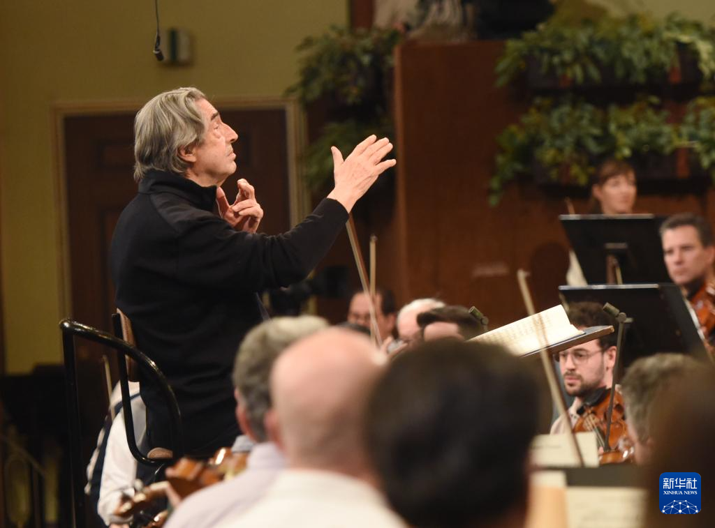 当日,2025年维也纳新年音乐会新闻发布会在奥地利首都维也纳举行。发布会后,指挥家穆蒂和维也纳爱乐乐团在金色大厅为2025年维也纳新年音乐会进行彩排。