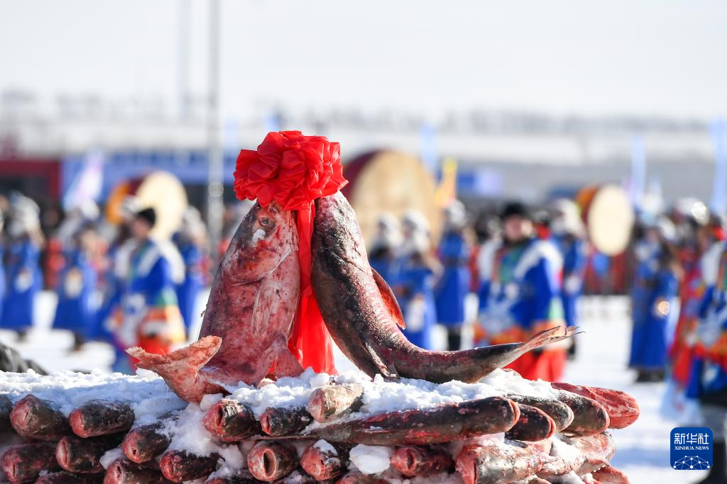 12月28日拍摄的查干湖冬捕“祭湖醒网”仪式现场。