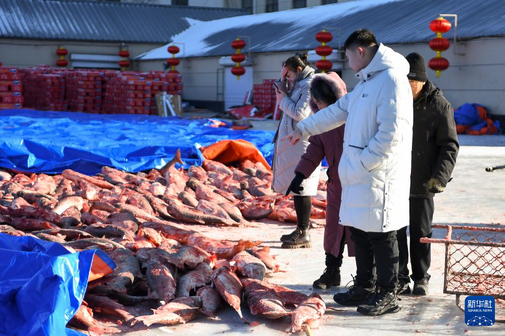 12月27日,人们在查干湖渔场超市查看鱼价。