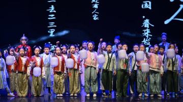 1月14日,在山东青岛北仲路第二小学开展的“国风古韵”迎新春主题活动上,学生们登台表演过年习俗。