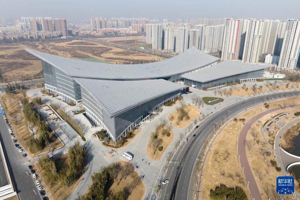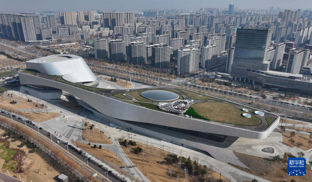 1月1日拍摄的新落成的长安云“一带一路”城市展示体验中心(无人机照片)。