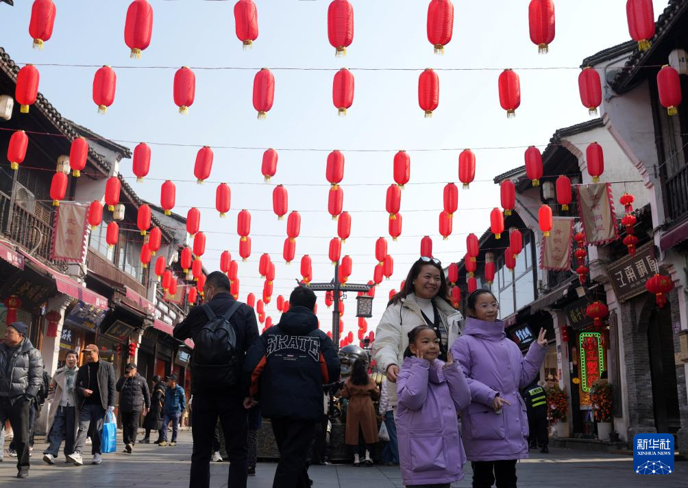 1月20日,游客在杭州河坊街游玩。