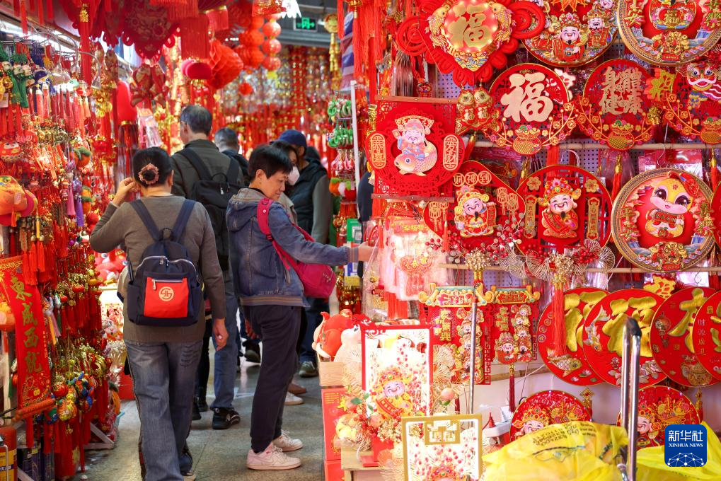 1月20日,市民在广州市一德路市场选购春节饰品。