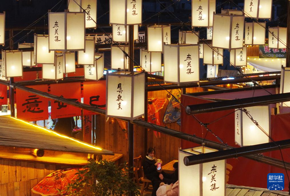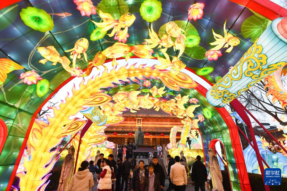 1月21日,人们在南京夫子庙景区赏灯游玩。