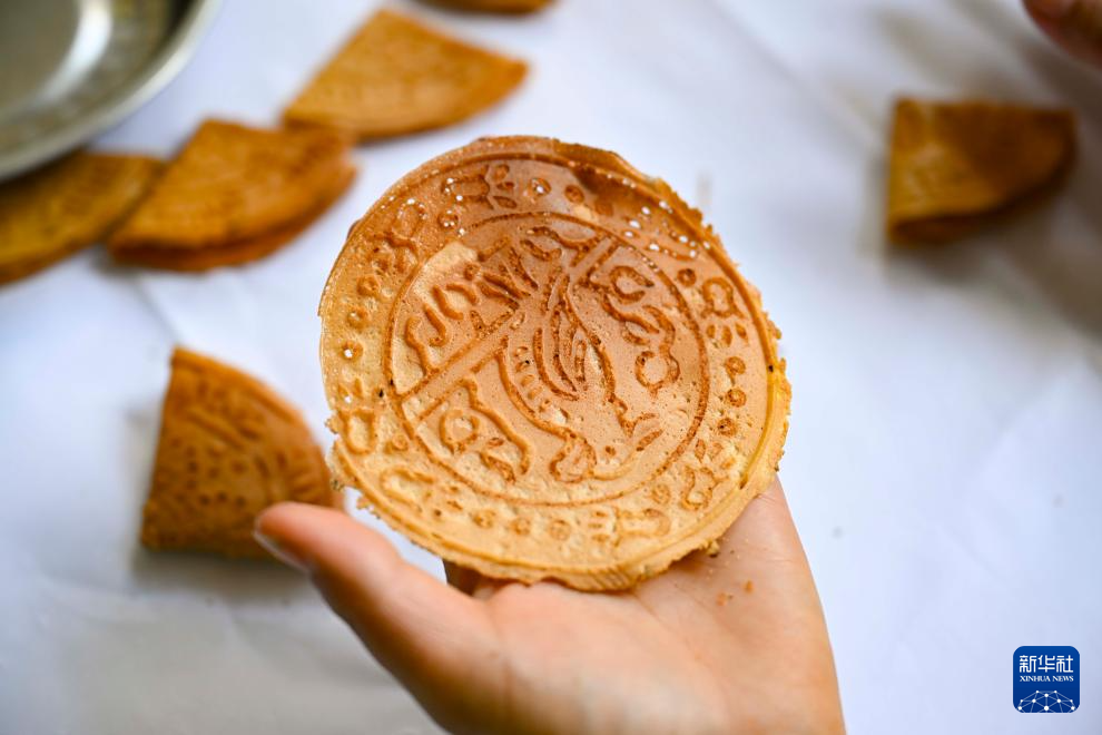 1月17日,在印度尼西亚梭罗,工人在一家糕点作坊展示包装好的年糕。