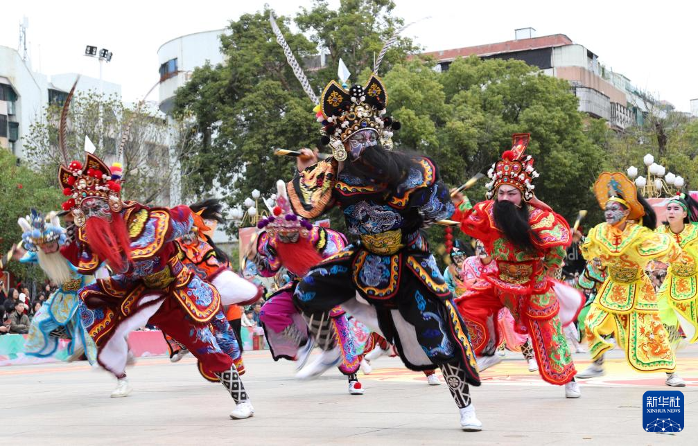 2月2日在广东汕头潮阳区“中华英歌 舞动潮阳——2025年春节潮阳英歌嘉年华活动”中拍摄的英歌表演。