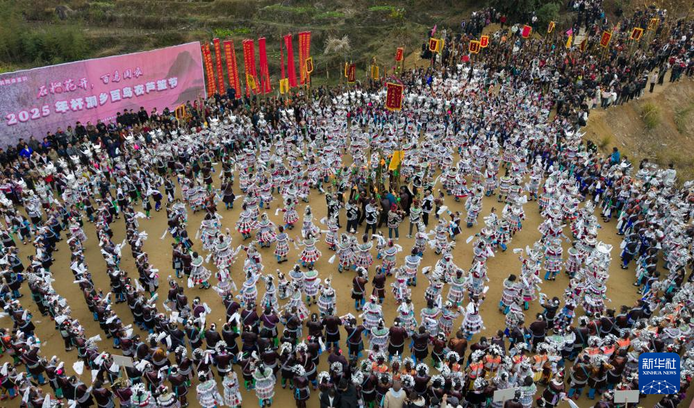 当日是正月初八,广西柳州市融水苗族自治县杆洞乡举行一年一度的百鸟衣芦笙坡会,苗、瑶、壮等上万名各族群众和游客欢聚一堂,展示民族服饰、跳芦笙踩堂舞、奏响芦笙,欢度新春。